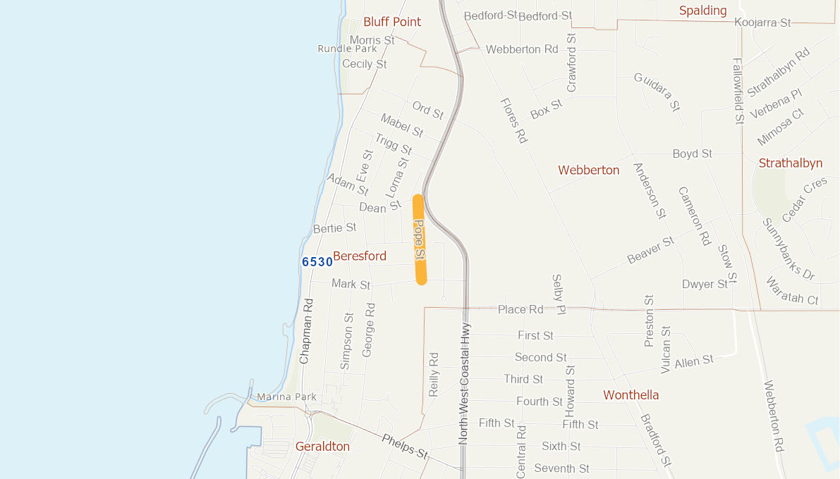 30mm Asphalt overlay, replace road grates (10) and kerbing (225m)