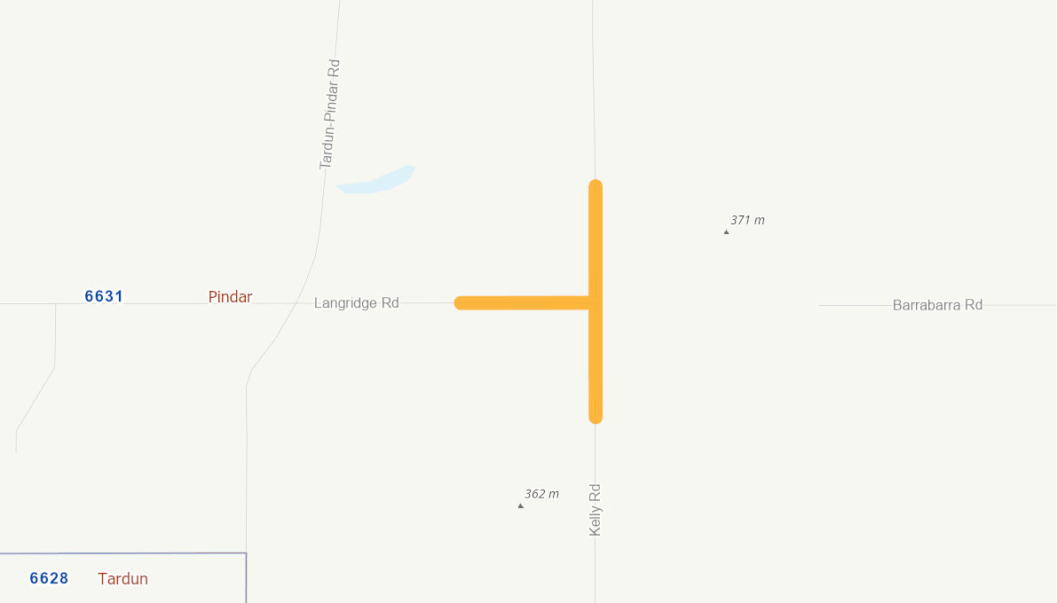 Old gravel road that is very badley potholed and needs to be shaped, graveled and sand sealed. Seal is 400m either side of the junction