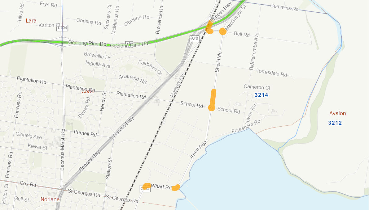 Rennie Street, Shell Parade, Wharf Road and Lowe Street provide a direct heavy vehicle route from the Princes Freeway to the Port of Geelong. The completed project has removed the need for heavy vehicles to mount kerbs or undertake wide turning manoeuvres, and provided a formal location where drivers can rest or complete paperwork before entering the Port of Geelong.