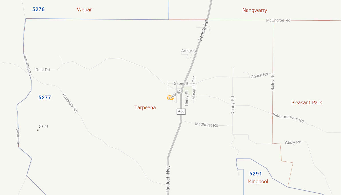 Road is unsafe due to poor drainage and localised flooding. Water cannot drain off the road due to deterioration of the road. Forms part of township improvement plan for Tarpeena, road changes from unsealed to seal and kerb. Realignment of intersection to improve safety.