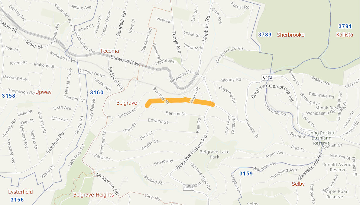 Rehabilitation of the existing sealed road pavement for a length of 750 metres from Belgrave-Hallam Road to Benson Street, widening the existing road by 1 metre, and constructing kerb and channel to improve drainage.