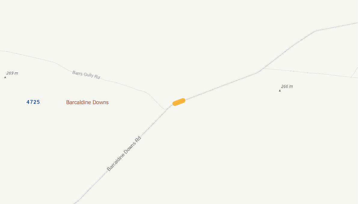 Existing carriageway is an unsealed gravel road prone to damage (scouring) during high rainfall events. Creek runs directly across this chainage blocks access between properties and town.