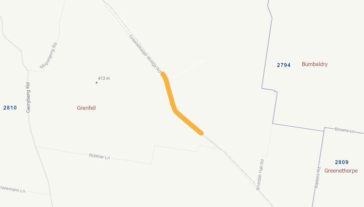 This section of Greenethorpe-Wirega Road consists of a 5m wide gravel pavement. The pavement has lost gravel nearly to its full depth and showing off the natural surface in many locations. It reduces safety to traffic especially to the heavy vehicles including school buses.
