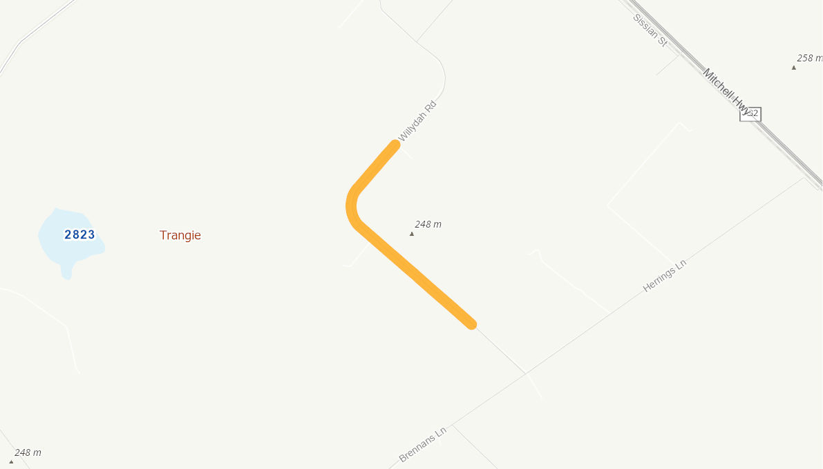 Narrow formation width of 6m. Narrow bitumen seal of 3.5 m, Significant pavement failure, edge drop off. School Bus Route and Heavy vehicle route between production areas into Trangie.