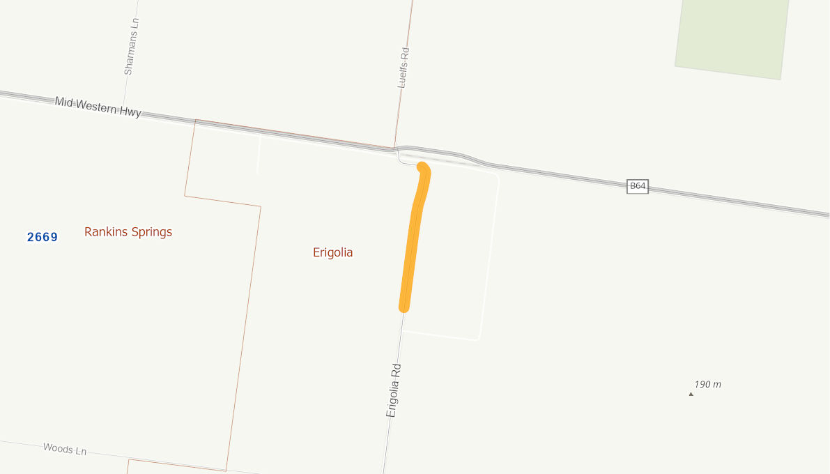 The road surface is narrow and not suitable for road Trains and B-Doubles.