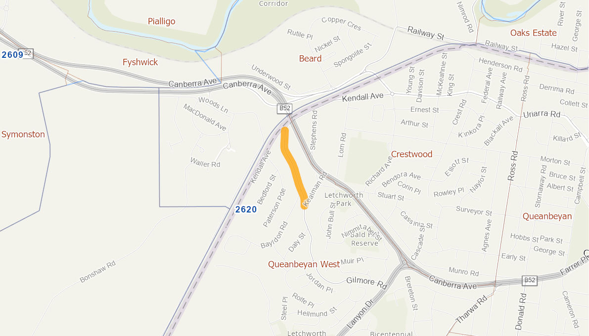 This road is a highly trafficked urban road within a busy industrial precinct of the City of Queanbeyan. The pavement is cracked and uneven. Evidence exists to suggest that water is now penetrating the pavement thus accelerating the degradation of the pavement's serviceability. The existing pavement is becoming a high maintenance liability.