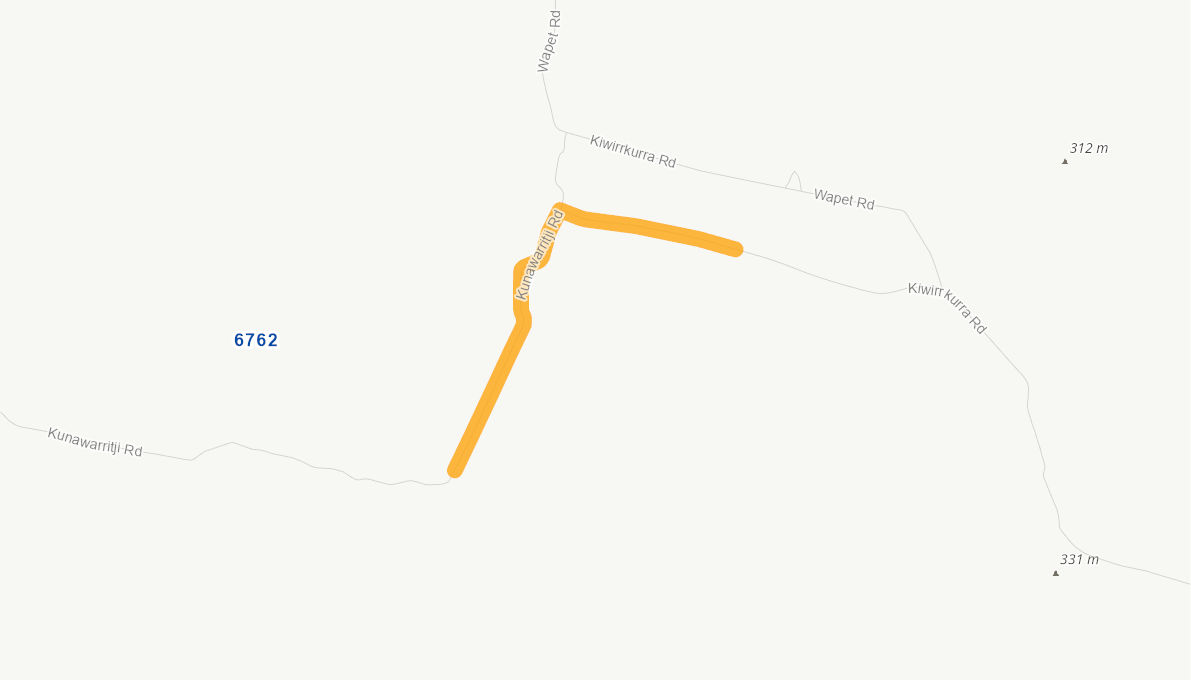 Road traverses sandy undulating terrain with limited gravel coverage accross road surface to allow for heavy traffic loading.