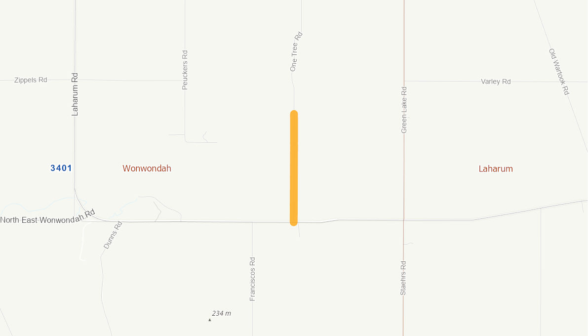 Reshaping the pavement and topping with 75 mm compacted thickness of gravel to provide a smooth riding surface and improved drainage. Length 700 metres x 4 metres wide.