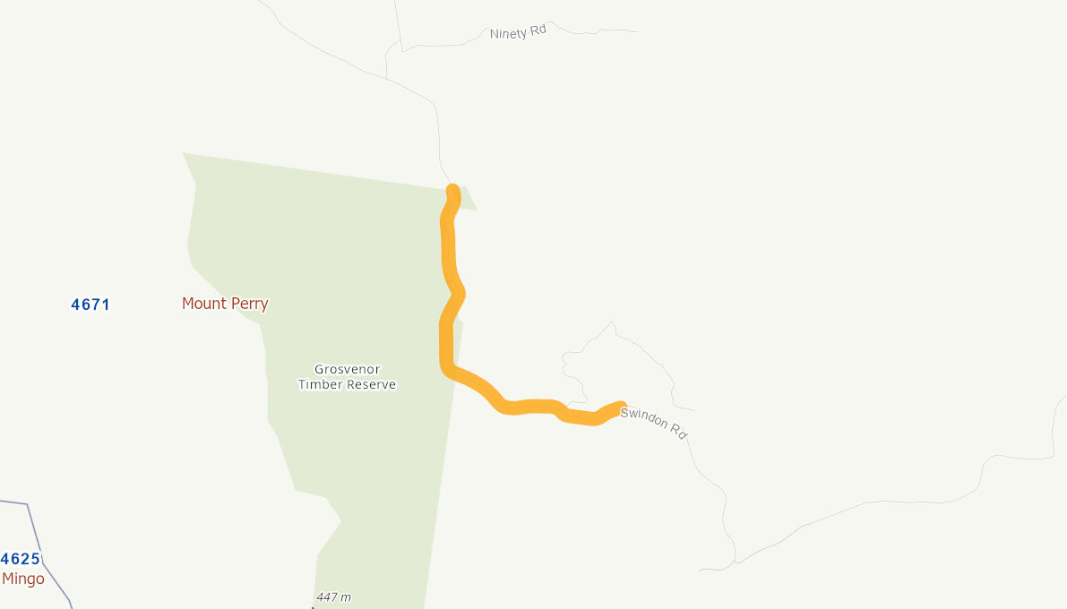 Narrow gravel road with inadequate vertical and horizontal curves that impede driver visibility. High traffic volume road that leads to a gold mine.
