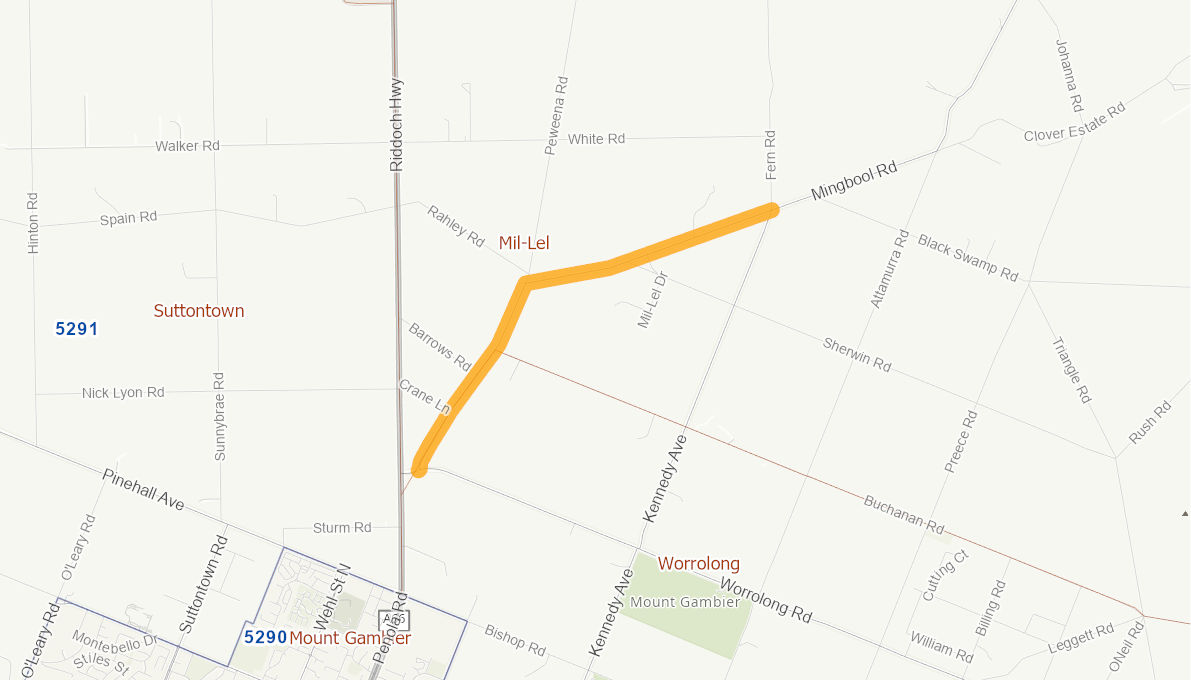 Mingbool Road is a heavy vehicle by-pass road and provide access for commodity freight to the A1 Princess Highway into Victoria for the horticulture, agriculture, dairy and forestry industries north of the City of Mount Gambier. The road is currently not fit for purpose as it is too narrow for heavy vehicles and requires widening. The road is rutting, cracking and particularly unsafe for users particularly in wet weather conditions with line marking to be refreshed to improved delineation.