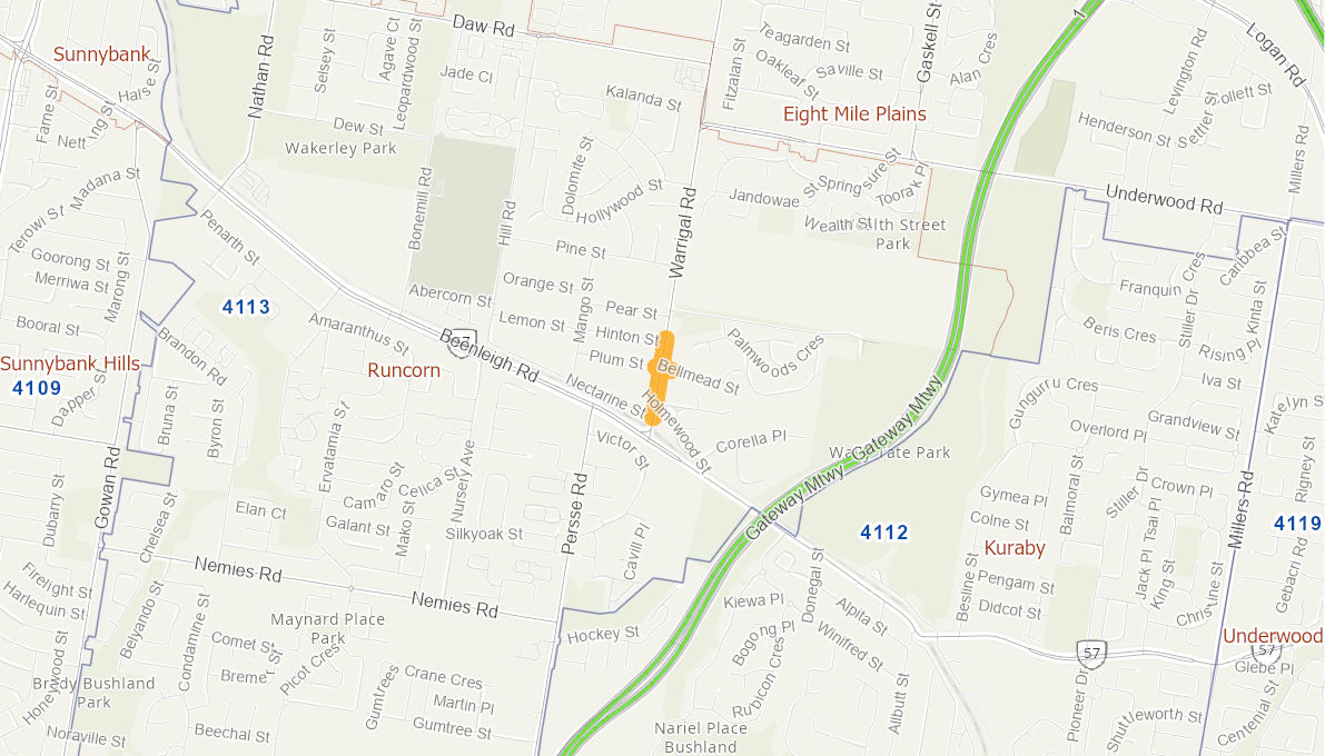 Brisbane City Council identified the Warrigal Road, Bellmead Street and Plum Street intersection as a location within the local road network that requires an upgrade to improve operating efficiency and improve local access and, safety. Warrigal Road is a busy road that carries more than 12,000 vehicles per day and provides connectivity to Fruitgrove Train station, Warrigal Square and Runcorn Plaza shopping centres and Warrigal Road State School. Currently vehicles experience difficulty turning in and out of Bellmead Street and Plum Street due to the high volume of traffic on Warrigal Road, resulting in queues back from the nearby rail crossing in the afternoon peak and limited visibility due to the crest on the southern approach to this intersection. Warrigal Road is also a high frequency bus route, however there are currently no controlled pedestrian crossing facilities in the near vicinity to allow safe crossing to the adjacent bus stops.