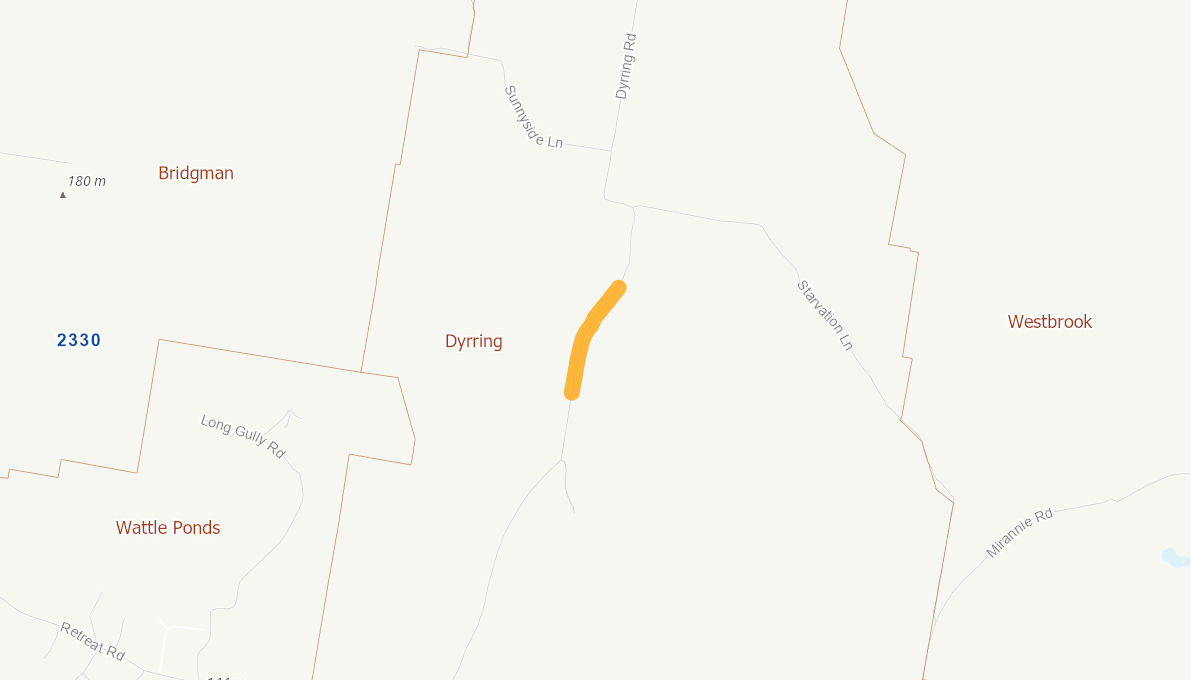Narrow section of unsealed roadway with a low level causeway to be raised and sealed