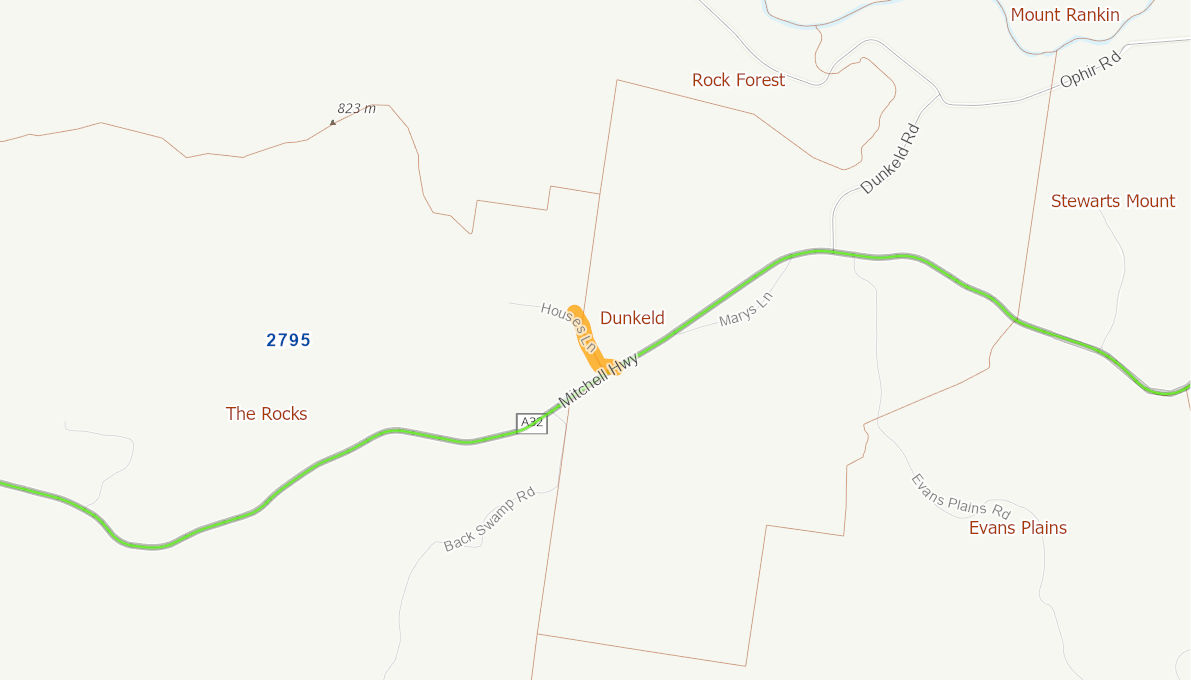 Unsealed gravel road. Steep sections slippery when wet. Narrow tree lined formation.