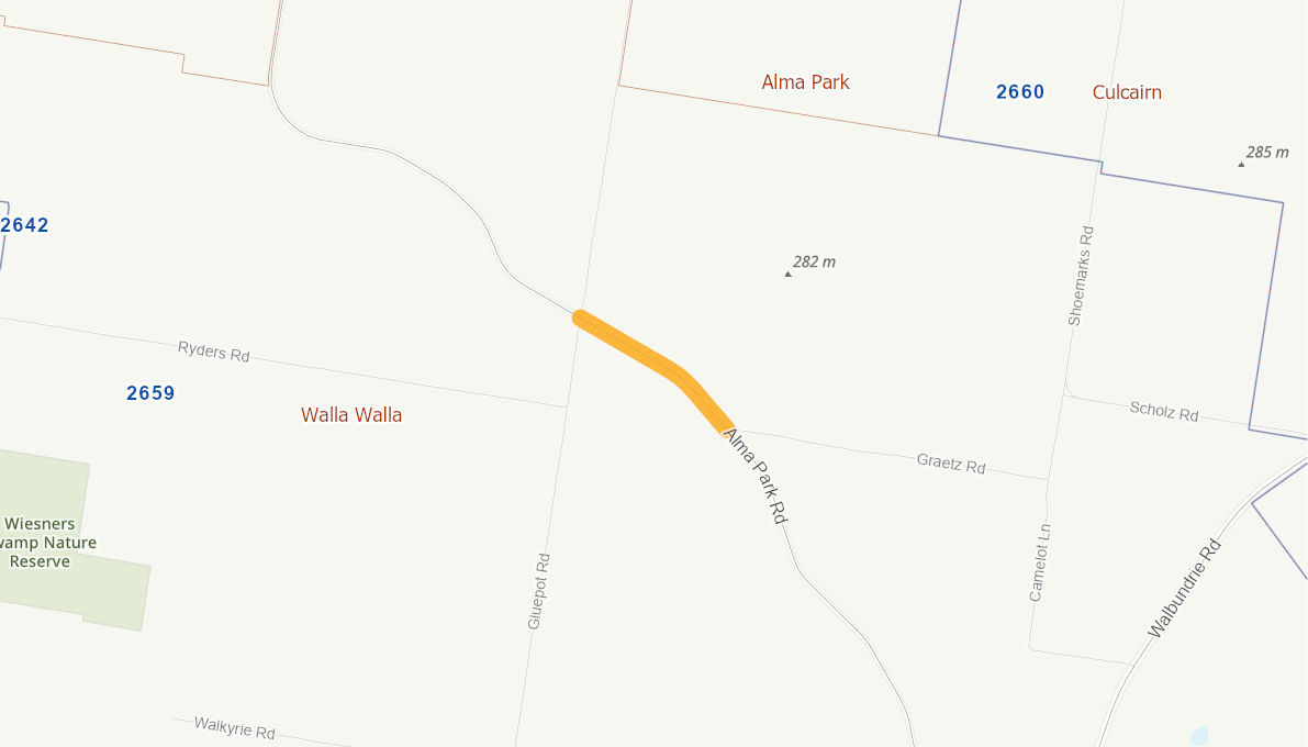 Reconstruct 1.1 km of pavement and widen to achieve a 7 metre sealed pavement with a 1 metre unsealed shoulder each side.