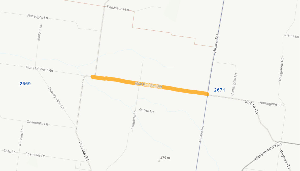 This road has a 6m wide gravelled surface and has extensive gravel loss with other failures such as rutting and potholes.