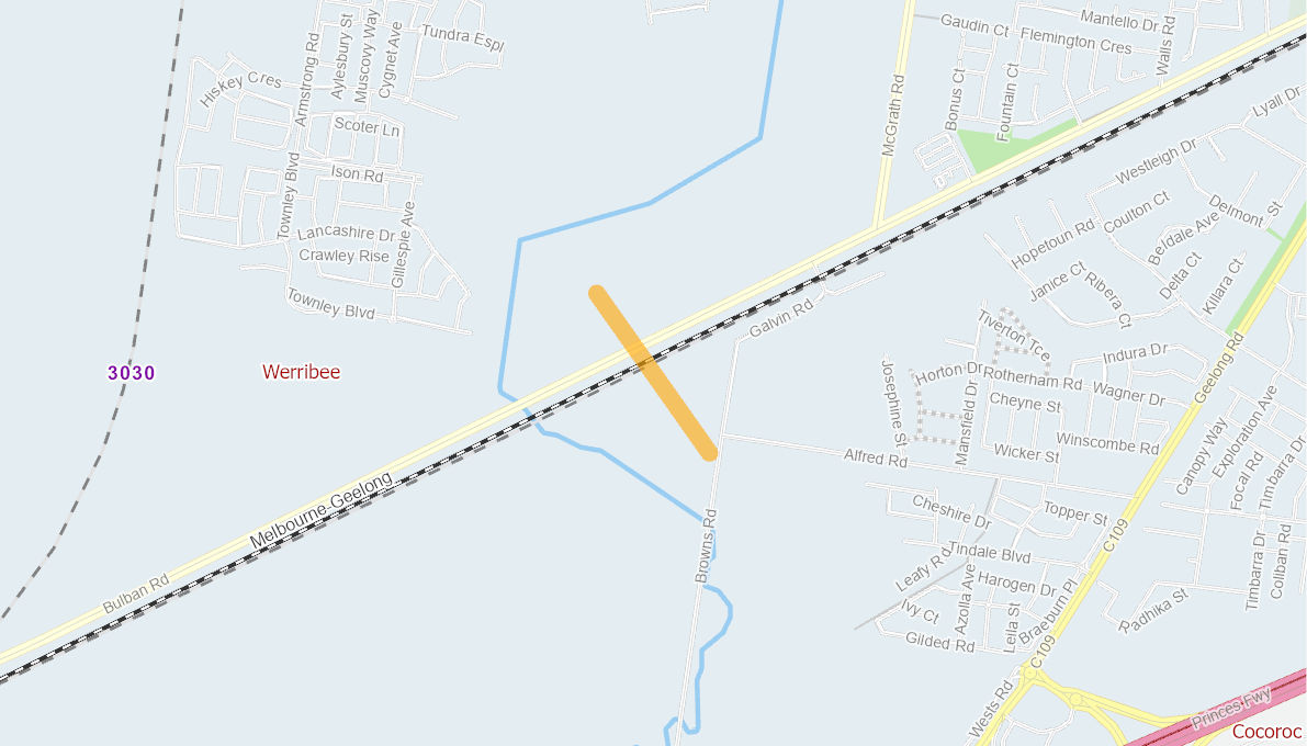 The project will construct a road overpass bridge across the Melbourne-Geelong Railway line connecting Ison Road with the proposed Ison Road Extension. The project will construct: • A four-lane overpass (approximately 500m) with a design speed of 80km/h • Overpass embankment formation and bridge deck future-proofed for six lanes • Shared User Path, on-road bike lanes on both carriageways, as well as a cycle path under the overpass on the northern side • Median barrier between carriageways • Barriers between the traffic lanes and Shared User Path on both carriageways. • Anti-throw screens