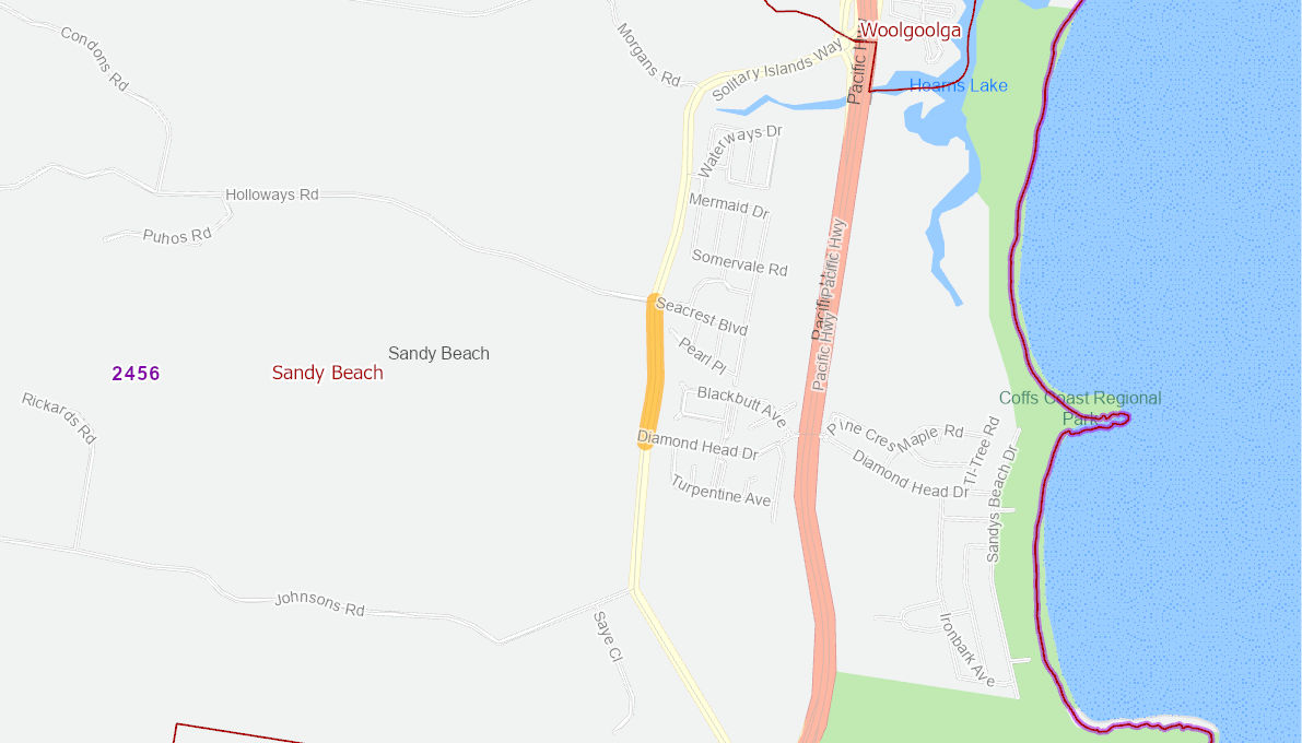 This road is an arterial road providing access to medium density housing estates, farming properties, beach access to Sandy Beach (via Diamond Head Drive), and provides connection to and from the Pacific Hwy. The road is also a bus route for the nearby Sandy Beach Public School, and other schools within the LGA. The road pavement has failed in sections, resulting in shoves, potholing and edge breaks, as a result of an ageing seal and pavement, and historical prolonged wet weather.