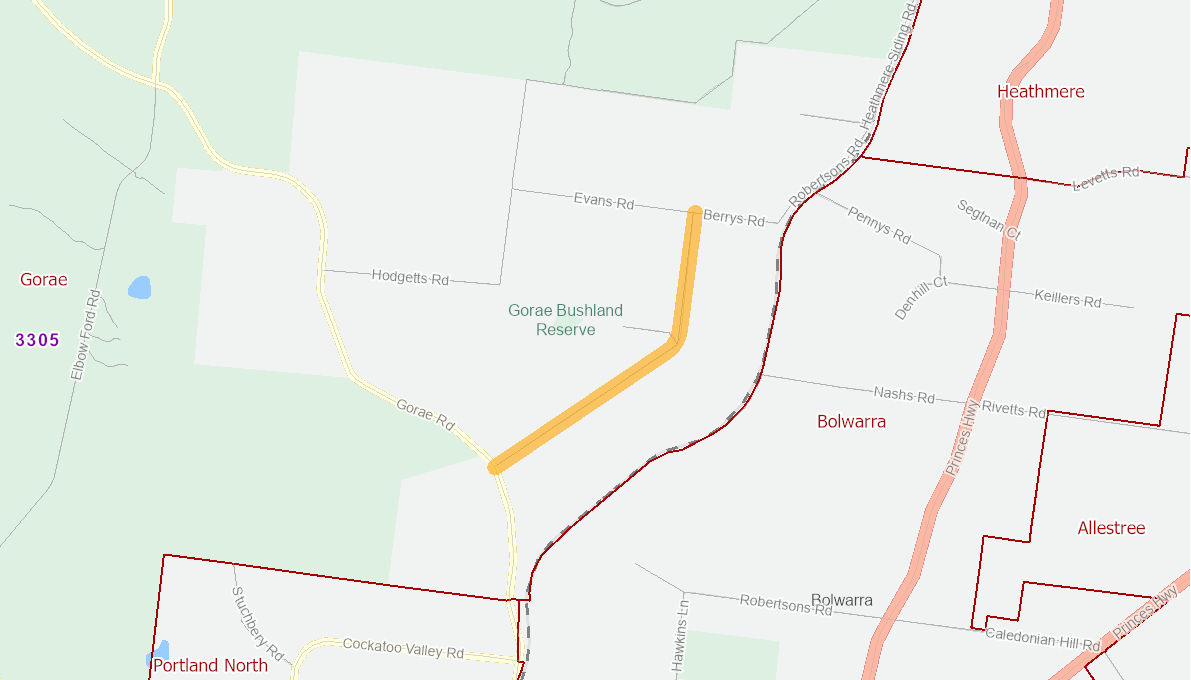 Reseal activity Berrys Road - From Gorae Rd to Evans Rd